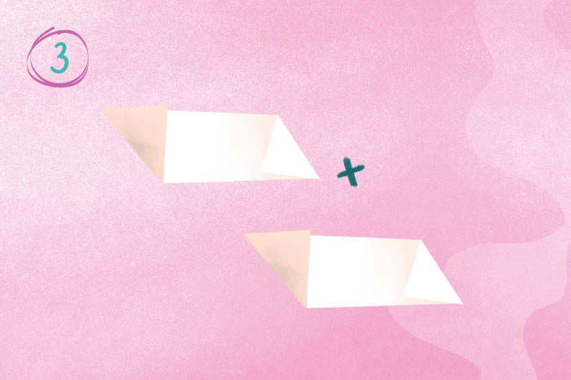 8 Hold the corners at the base and push them towards each other to pinch both sides, so the top forms the shape of a cross.