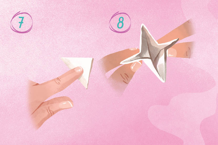 5 Fold one of the flaps from the bottom piece of paper into the centre of the star.
