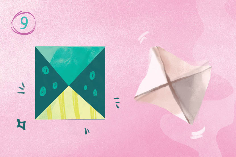 9 Release so you’re left with a spinnable square. Decorate your tabletop spinner with coloured pens, then give it a spin.